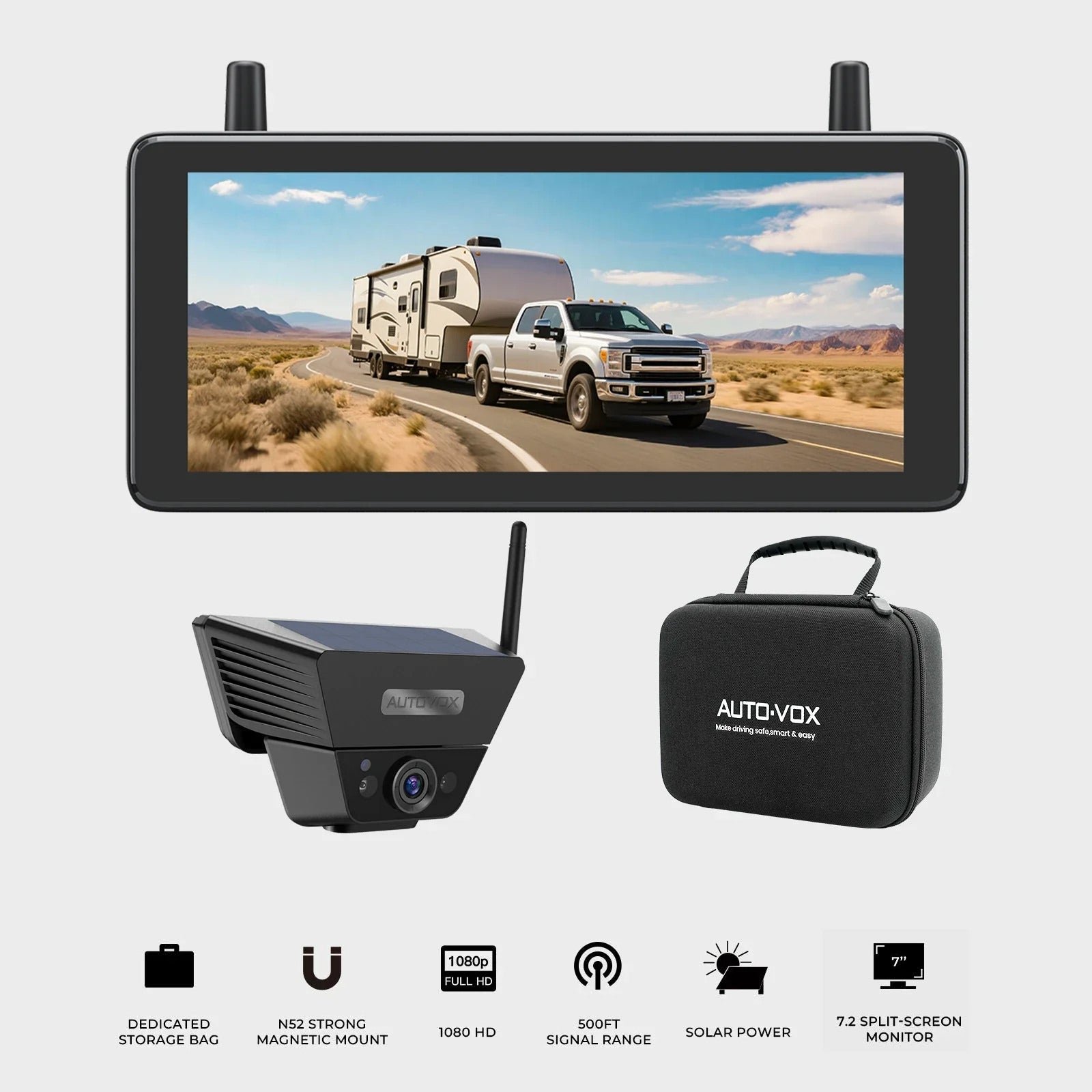 AutoVox Solar 5 Pro - Trådlös backkamera