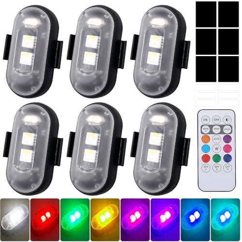 AVCXEC 6 stycken trådlösa LED-lampor, 8 färger strobe drönarlampa, vattentät bil fjärrkontroll blixt med fjärrkontroll, USB-laddning antikollisionslampor, LED-flygplan strobe lampor