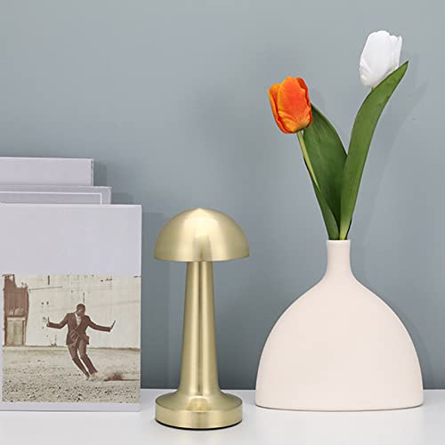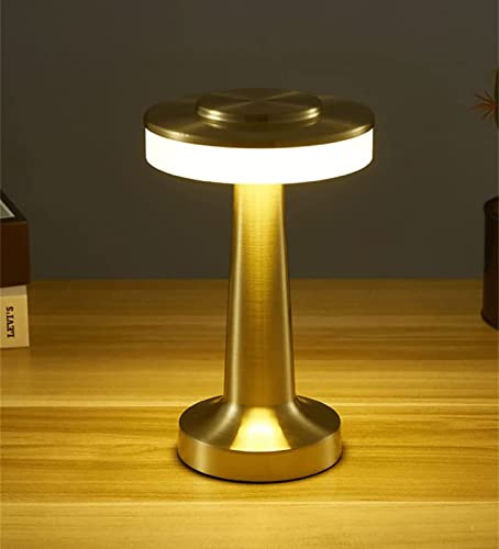 MISNODE Trådlös bordslampa uppladdningsbar, 3 nivåer ljusstyrka bärbar LED-bordslampa med beröringssensor, svamplampa metall dimbar sänglampa (guld)