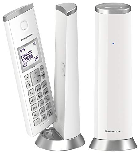 Panasonic KX-TGU410EXW trådlös digital telefon med telefonsvarare, basenhet och 1 handtelefon, LCD-skärm, favoritsamtal, ficklampa, kompatibel med hörapparater, vit och silver