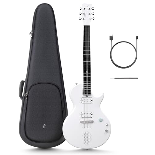 Enya Nova Go Sonic Electric Guitar - White Carbon Fiber Smart Electric Guitar with 10W Wireless Speaker, Built-in Presets, Charging Cable, Adjustment Key and Gaming Bag