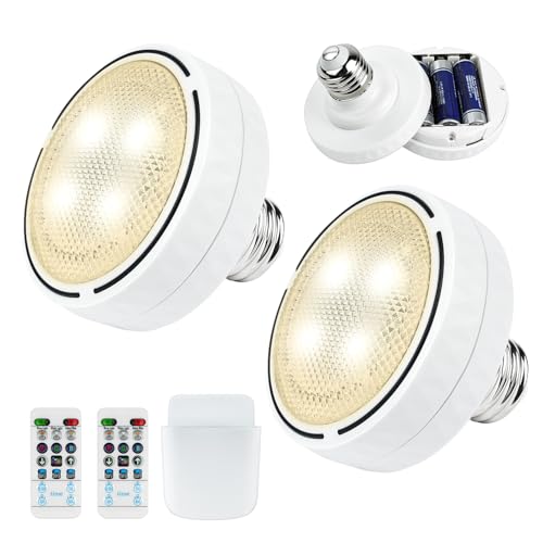 Aolso 2 st batteridrivna glödlampor, E26/E27 trådlöst dimbart ljus, AA batteridrivna LED-lampor med fjärrkontroll, glödlampa för icke elektrisk vägglampetter och hängande ljusarmatur