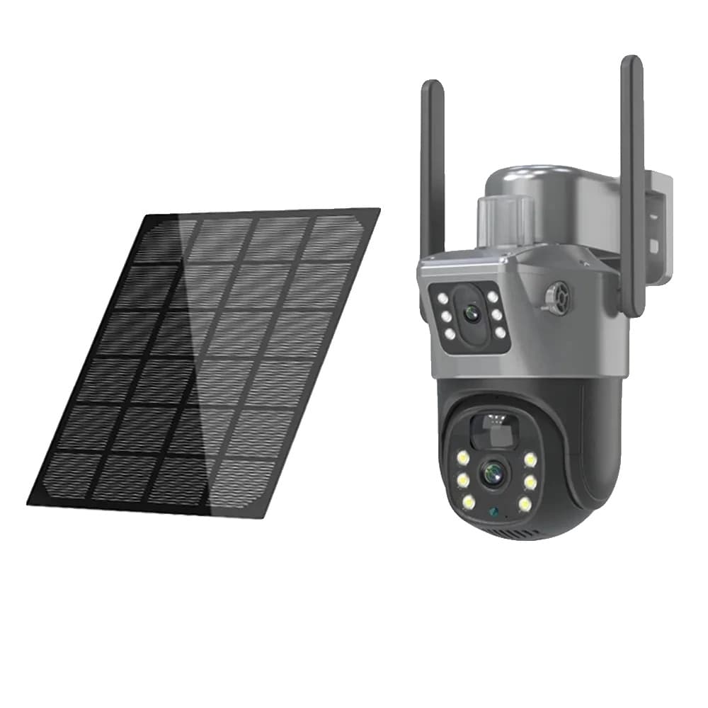 Utomhus Trådlös Kamera, Solenergi, Dubbel Lins Säkerhet,WIFI-kamera utan kort, EU-kontakt