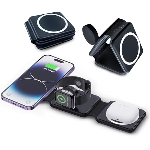 Hd-line 3-i-1 magnetisk trådlös laddningsplatta, vikbar laddare, kompatibel med iPhone 15 14 13 12, Apple Watch Ultra 9/8/7/6/5/4/3/2/SE/AirPods 2/3/Pro, snabbladdare, svart