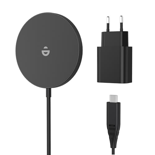 Snabbladdare, kompatibel med Mag-Safe med strömförsörjning, 20 W, USB-C, magnetisk, trådlös, laddare för iPhone 16/15/14/13/12-serien och, svart