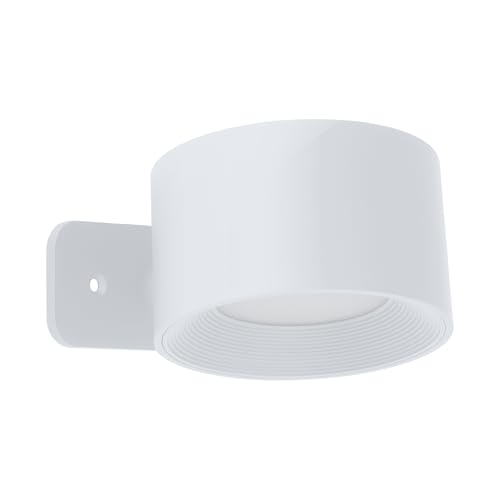 EGLO Muraglie LED-inomhusvägglampa, batteridriven, med väggfäste, trådlös väggspotlight, med touch-dimmer, USB-uppladdningsbar, rund, vit plast, varmvitt till kallt vitt ljus
