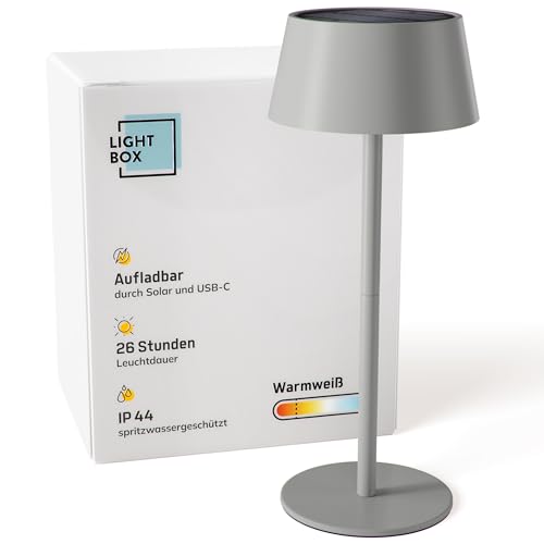 Lightbox LED utomhusbord | Ø 13 cm | trådlös utomhu med sol | 3 nivåer touch-dimmer | batteridriven bord (4 W, 300 lm, 3 000 K) av metall/plast i grått | balkongdekoration