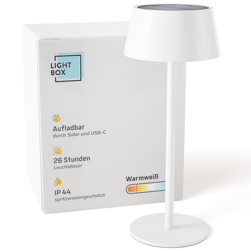 Lightbox LED utomhusbord | Ø 13 cm | trådlös utomhu med sol | 3 nivåer touch-dimmer | batteridriven bord (4 W, 300 lm, 3 000 K) av metall/plast i vitt | balkongdekoration