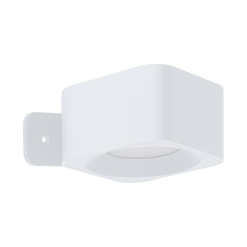 EGLO Muraglie LED-inomhusvägglampa, batteridriven, med väggfäste, trådlös väggspotlight, med touch-dimmer, USB-uppladdningsbar, kantig, vit plast, varmvitt till kallt vitt ljus