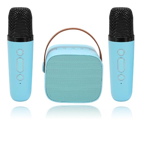 Karaokemaskin, Multifunktionsstereoljud Bärbar Bluetooth5.3-högtalare, Mini Karaokemaskin med 2 Trådlösa Mikrofoner för Hem, Fest, KTV (Blå)