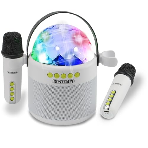 BONTEMPI - Trådlös högtalare med dubbla mikrofoner och discobelysning, idealisk för piano, barnspel, barninstrument, barnmusik, gitarr, trummor, maracas, barnmikrofon 18,5x17x12 cm