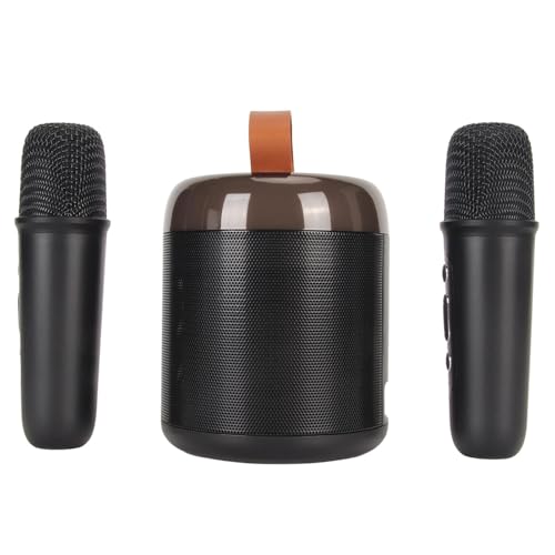 Bärbar Karaokemaskinset, RGB Bluetooth-högtalare med 2 Trådlösa Mikrofoner för Barn, Vuxna, Stöd för 512G Lagring, Handhållen Mikrofon för Familjefestens Födelsedag (Svart)