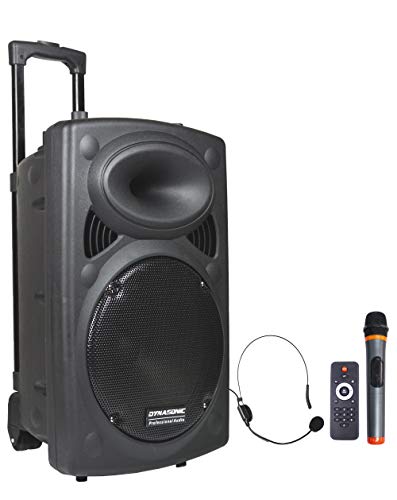 DYNASONIC - Dynapro - Trådlös högtalare Professional Audio System Megafonia Portable TWS | USB Bluetooth-läsare FM-radio och mikrofoner, Svart färg (DYNAPRO 12)