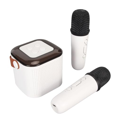 Mini Karaoke Machine Set, Portabel Stereo Bluetooth-högtalare med 2 Trådlösa Mikrofoner för Barn Vuxna, Upp Till 512G Lagring, Handhållen Mikrofon för Home Party KTV (Vit)