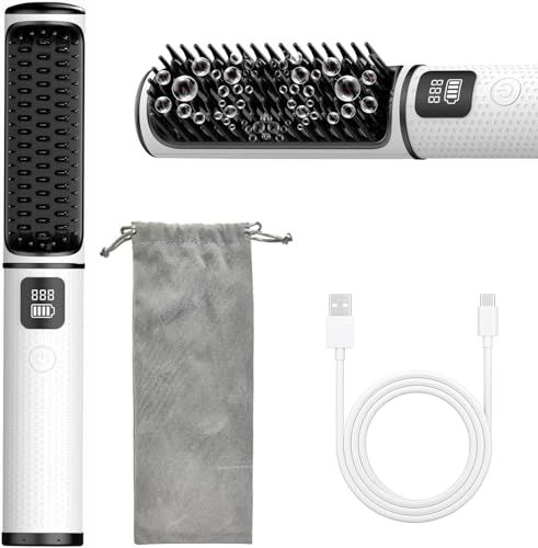 OBEST Trådlös utjämningsborste, mini plattång hårplattång borste, bärbar fluffig kam för kvinnor, 2-i-1 slät hårborste, med 4 justerbara temperaturer, 140 ° C-200 °C