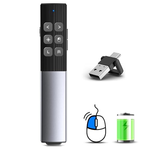 Metallfodral trådlös presentatör för presentationer med mous, USB typ C 2-i-1, uppladdningsbar presentation, fjärrkontroll, presentatörpekare för Mac Keynote PPT PC, bärbar dator, kontor