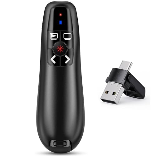 USB C-presentatör, trådlös 2,4 GHz PowerPoint-fjärrkontroll, pekare för presentationer via typ C och USB-mottagare, röd presentationsfjärrkontroll för Windows 7/8/10/Mac/Linux/Android (USB&C)