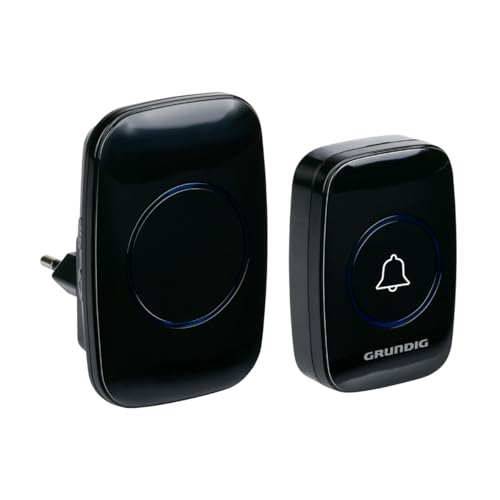 Grundig Sladdlös dörrklocka-set – dörrklocka trådlös 300 meter räckvidd – trådlös ringklocka med LED-ljus och 60 melodier – plug-in-mottagare – batteri ingår – svart