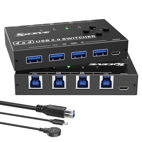 YOUTINGHDAV USB 3.0-Switch För 4 PC, 4-In-4-Ut, För Tangentbord, Mus, Skrivare, Skanner, Med Trådlös Fjärrkontroll Och 4 Kablar