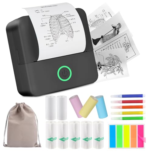 GuKKK Mini fotoskrivare, mobil termisk skrivare, trådlös Bluetooth-skrivare för smartphone, med 13 rullar skrivarpapper och 5 färgpennor, bärbar för lista, dagbok