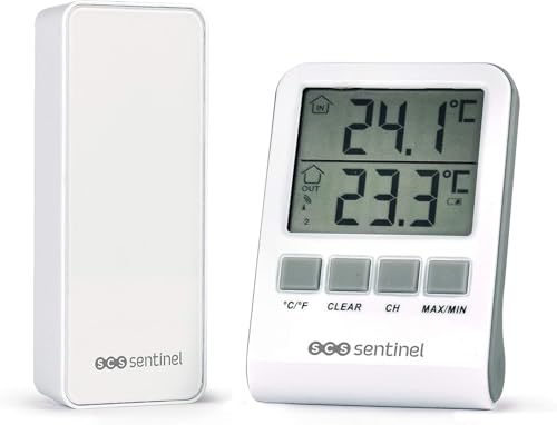 SCS Sentinel - HCN0066 - Digital termometer med trådlös utomhussensor - trådlös termometer - utomhustermometer - väderinstrument - DigiThermo Inomhus/utomhus