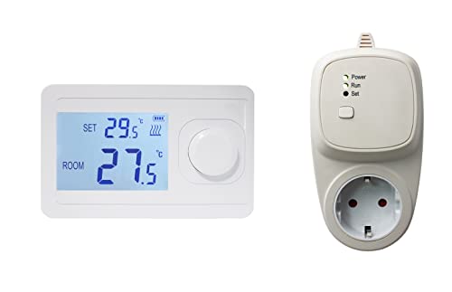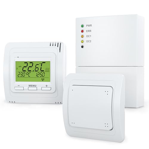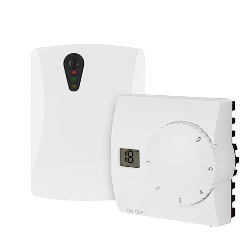 Trådlöst rumstermostatset EB71332-2R | Värmekontroll och ljusstyrning med mottagare, termostat och radioknapp | Energisparande med veckoprogram, frostskydd och barnsäkerhet