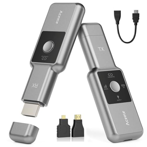 Aceele Trådlös HDMI-sändare och mottagare, 4K-avkodning 1080P-utgång, 2,4 G/5 G dubbel WiFi-display HDMI-förlängare med 165 FT sändningsintervall för PC/DV/HDTV/projektor/TV-box, ingen app eller