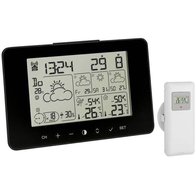TFA 35.1170.01.Plus trådlös väderstation med 2 display väderprognos radioklocka datum trendvisning utomhussensor (svart utan batterier)
