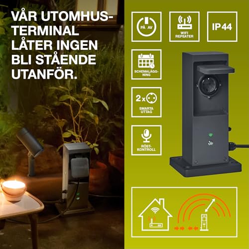 OSRAM SMART+ WiFi Outdoor Terminal EU med integrerad repeater & 2 uttag, vit, 230V, utökar WiFi-zonen utomhus, länkning av trådlösa enheter, appkontrollerbar, 3 års garanti, IP44
