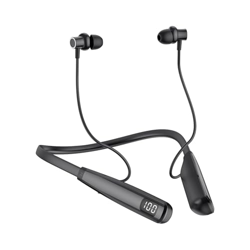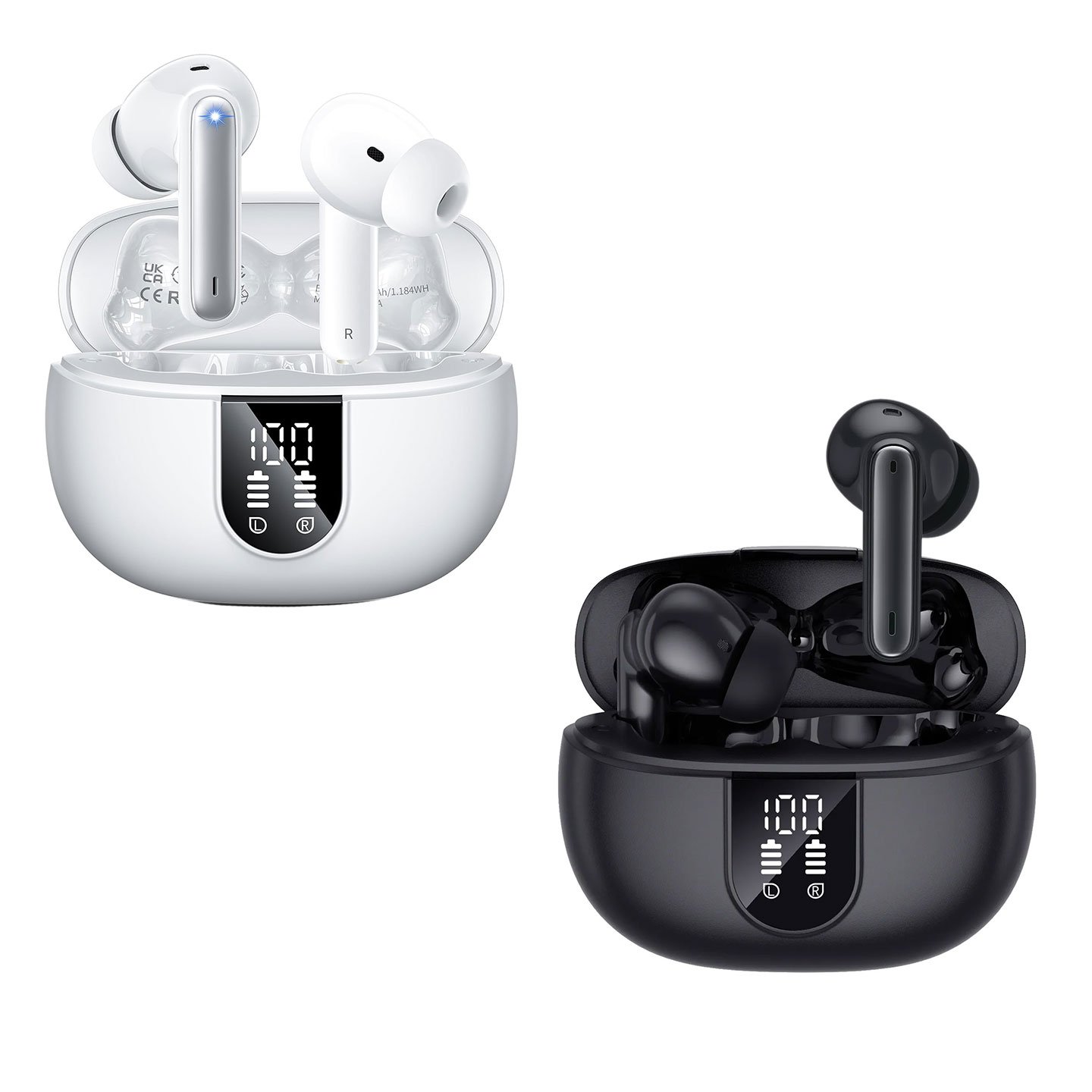 Bluetooth-hörlurar, trådlösa in-ear hörlurar Bluetooth med mic, 25 timmars speltid med LED-display, Hi-Fi-stereo, knappkontroll, för mobiltelefon, surfplatta, TV