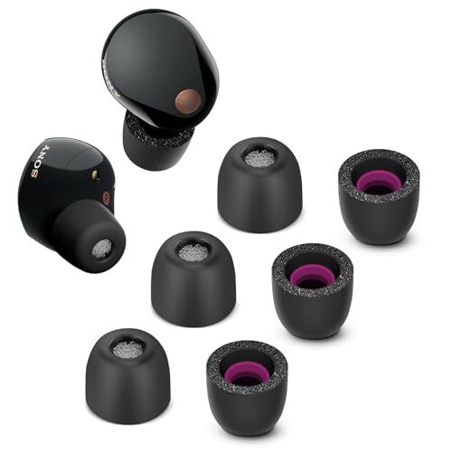 Tips med minnesskum för Sony WF-1000XM5 med dammnät, halkfria ersättningsöronspetsar för Sony True trådlösa hörlurar, passar i laddningsfodralet, perfekt brusreducering, 3 par (stor, svart)