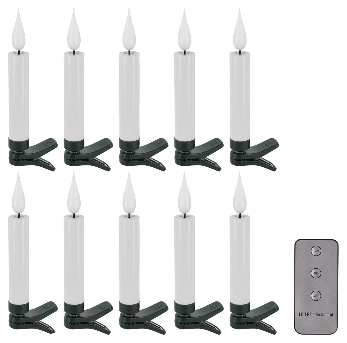 goobay 49873 sladdlösa LED-julgransljus med timerfunktion/LED-ljus med fjärrkontroll/flimrande låga, julgransljus, elektriska ljus/trädljus, set om 10, vit
