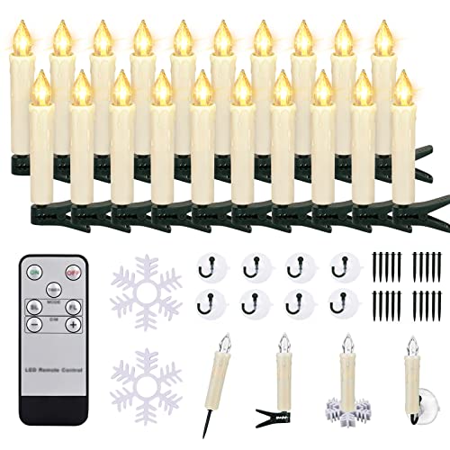 ZIYOUDOLI 20 stycken LED-julljus, elektriska falska ljus, julgransljus, trådlös fjärrkontroll med timer, flimrande, dimbara, batteridrivna julgransljus för äggdekoration