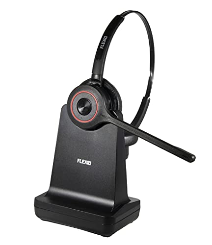 Trådlösa Stereo hörlurar med bordsladdare – Wireless headset till PC och mobiltelefon med brusreducerande mikrofon – On-Ear FLEX redline R6 till kontoret - Svart
