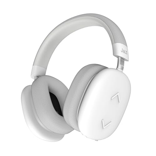 JAZ Pure Wave Trådlösa Gaming On Ear-hörlurar, låg latens, 3,5 mm uttagsport, inbyggd mikrofon och kontroller, laddkabel och AUX, för smartphone, surfplatta, bärbar dator, 50 timmar