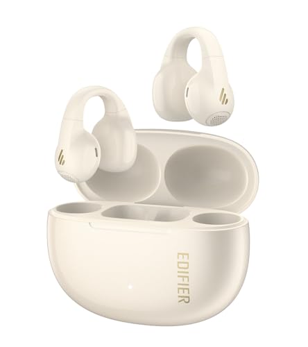 Edifier R1 Open-ear True Trådlösa Hörlurar, Bluetooth 5.4 Clip-On Hörlurar, AI Klara Samtal, Utbytbar anVändning, 28H Speltid, Snabbladdning, Flerpunktsanslutning, Appkontroll, IP56, Vit