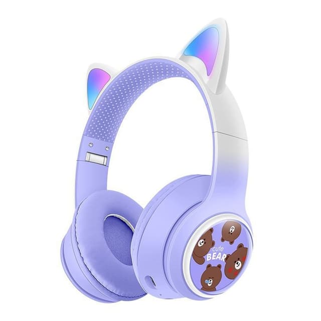 Trådlösa On-Ear hörlurar Glödande Kattöra Bluetooth Gaming Headset - Lila