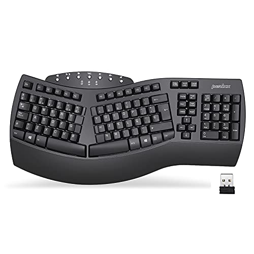 Perixx Periduo-605, trådlöst ergonomiskt delat tangentbord och vertikal muskombination, justerbart handledsstöd och membran lågprofilsnycklar, UK QWERTY