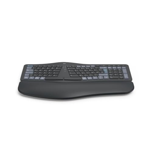 Ewent Ergonomiskt trådlöst tangentbord, ergonomiskt QWERTY italiensk layout tangentbord, inbyggt handledsstöd, Bluetooth och USB-anslutning, enkel omkopplare, tysta knappar, kompatibel med Windows