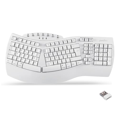 Perixx 11620 PERIBOARD-612 ergonomiskt trådlöst tangentbord, delad knappsats med dubbla lägen 2,4 G eller Bluetooth, kompatibel med Windows 10 och Mac OS X, vit, QWERTZ, tysk layout