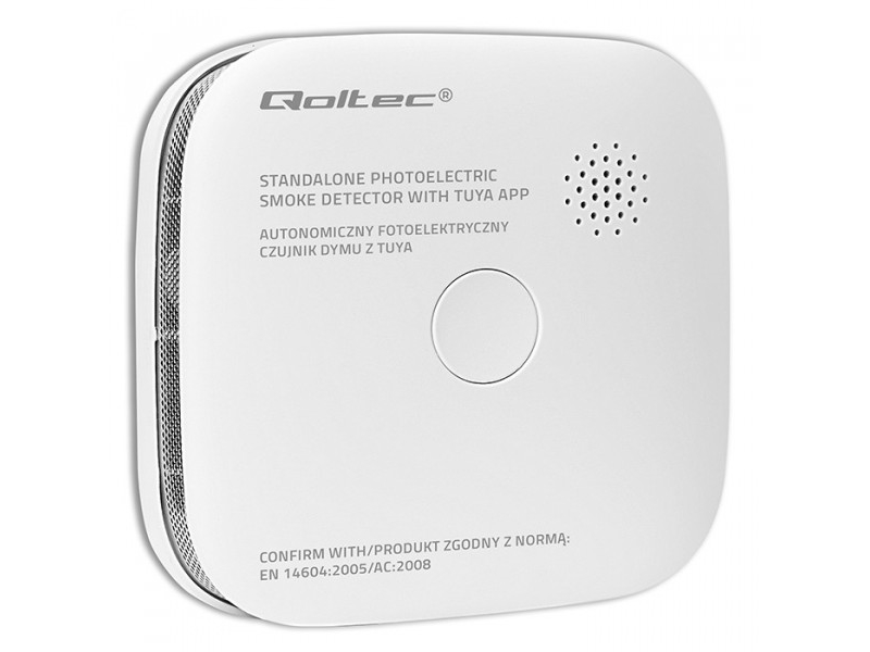 Qoltec Certifierad Trådlös Rökdetektor Med Batteri | Tuya | Wi-Fi | Sensorlivslängd 10 År | 85Db Larm | Led