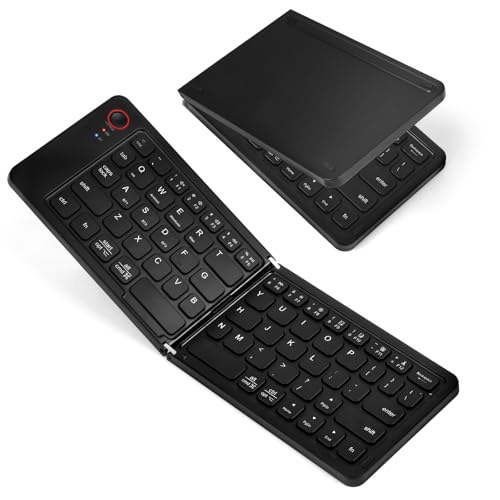 Aolso Vikbart tangentbord hopfällbart, uppladdningsbart trådlöst minitangentbord för iOS, Android, Windows, bärbart minitrådlöst tangentbord i fickformat för iPad, smartphone, PC och bärbar dator
