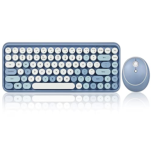 Perixx PERIDUO-713BL trådlöst minitangentbord och mus kombination – retro runda nycklar – pastellblå – amerikansk engelsk layout ..