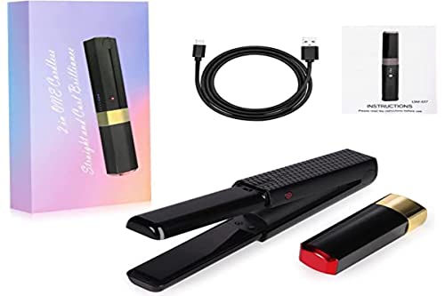 Trådlöst hårstrykjärn, LiveGo 2-i-1 Strykjärn och locktång, Mini Bärbar USB Uppladdningsbar Keramiska Flatjärn, Snabb uppvärmning, Justerbar temperatur, Perfekt för att avsluta
