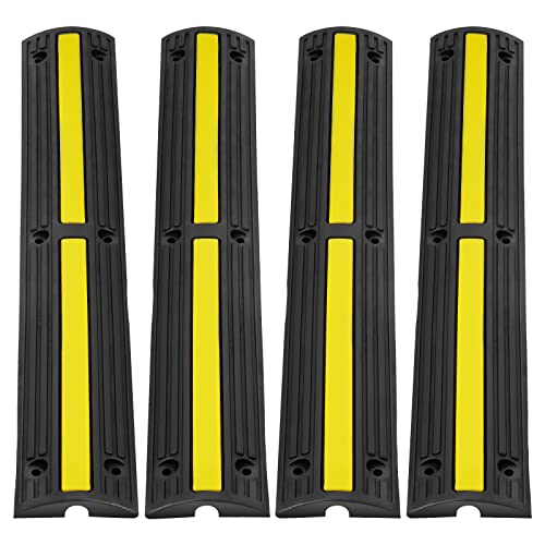 VEVOR 3,3 fot kabelskyddsramp, 4-pack med 1 kanal, 2000 kg/axelkapacitet, kraftiga gummihastighetsstötar, golvsladd, kabelskydd, trådskydd, för bostadsområden, privata garage, trädgårdar