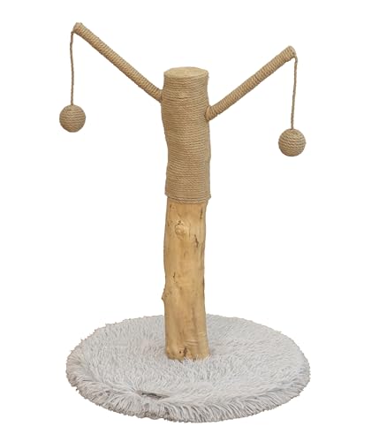 Dehner Lovely kattklösträd, ca 80 x 45 x 45 cm, äkta trädstam, trä/plysch/sisal, brun/vit