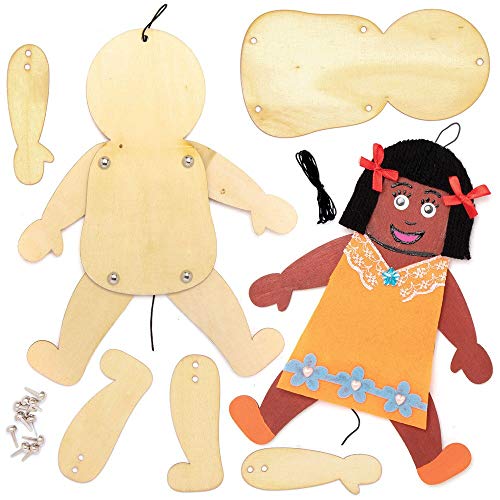 Baker Ross Hantverksset träfigurer "robot" (4 stycken) – rörlig docka med rörliga armar och ben för barn att designa