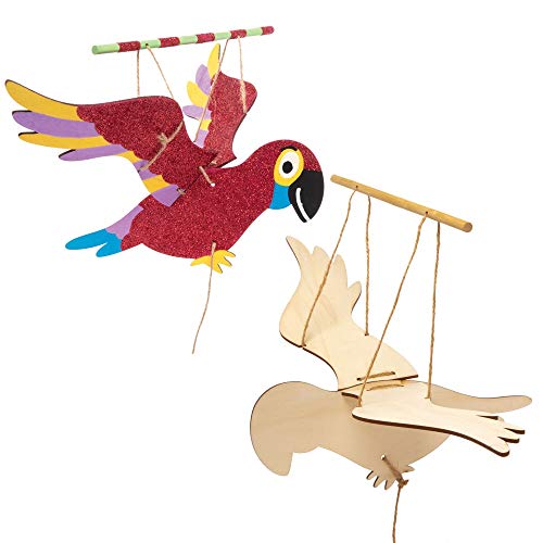 Baker Ross pysselset träfigurer "Papagei", för konst- och pysselprojekt för barn (förpackning med 3)