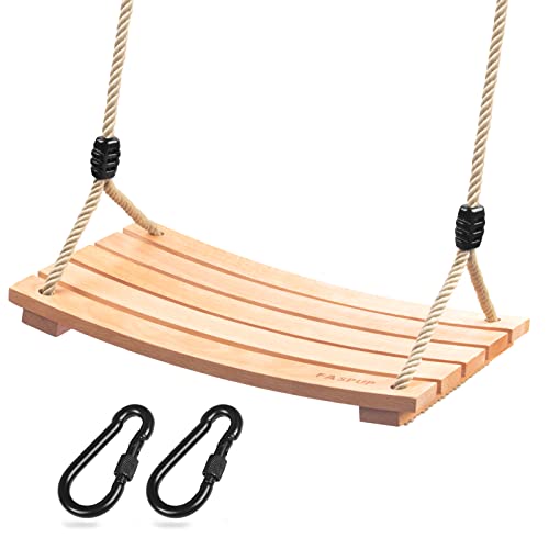 Trägunga utomhus för vuxna barn, gungsits trä med justerbart hamparep, gunga trä utomhus för trädgård, gunga för vuxna upp till 100 kg (17,7 x 9,8 tum)