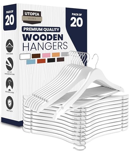 Utopia Home Premium trähängare 20-pack – hållbar och smal klädhängare – kostymhängare med 360 graders roterbar krok – trähängare med axelspår (vitfärgad)